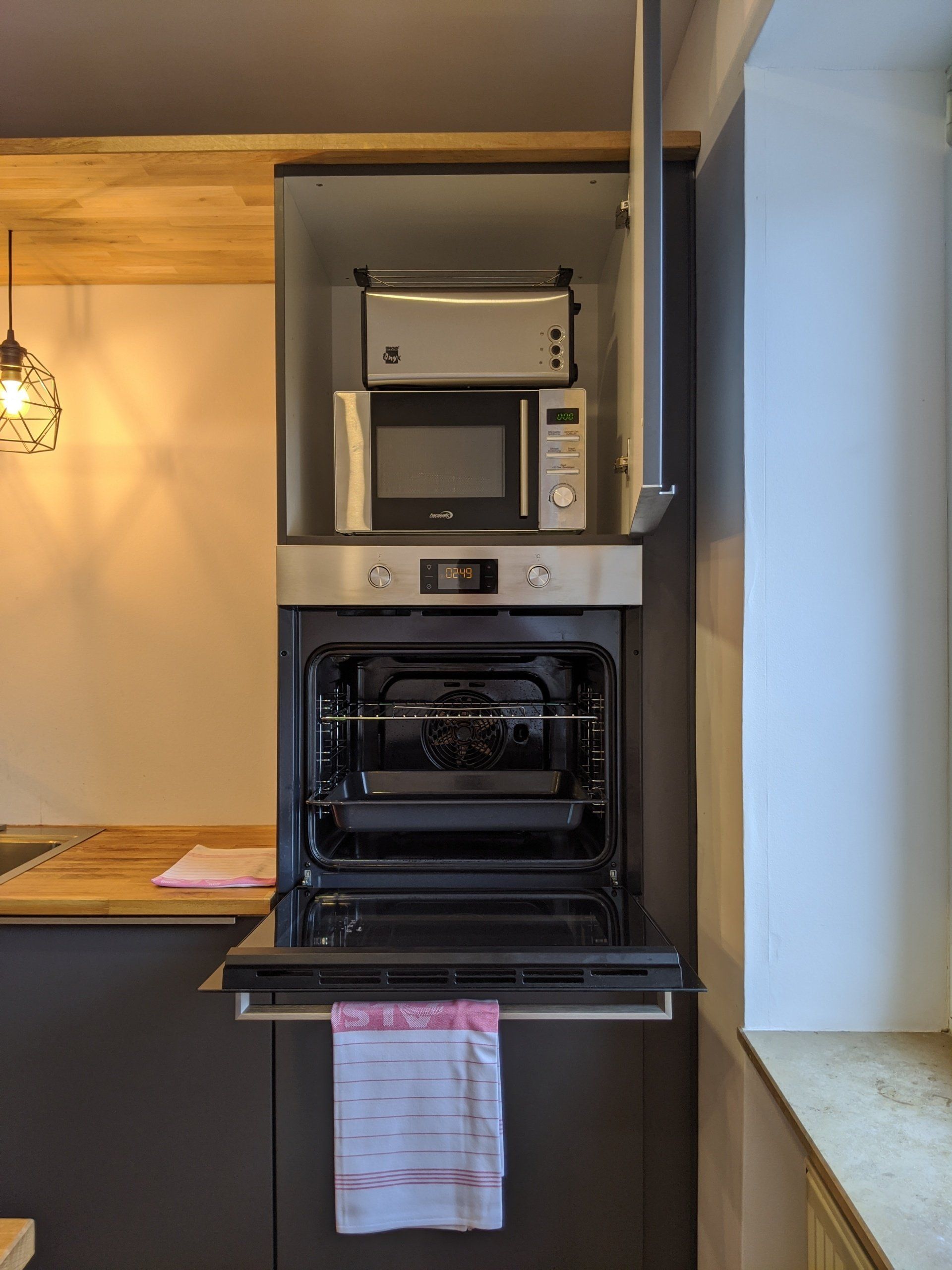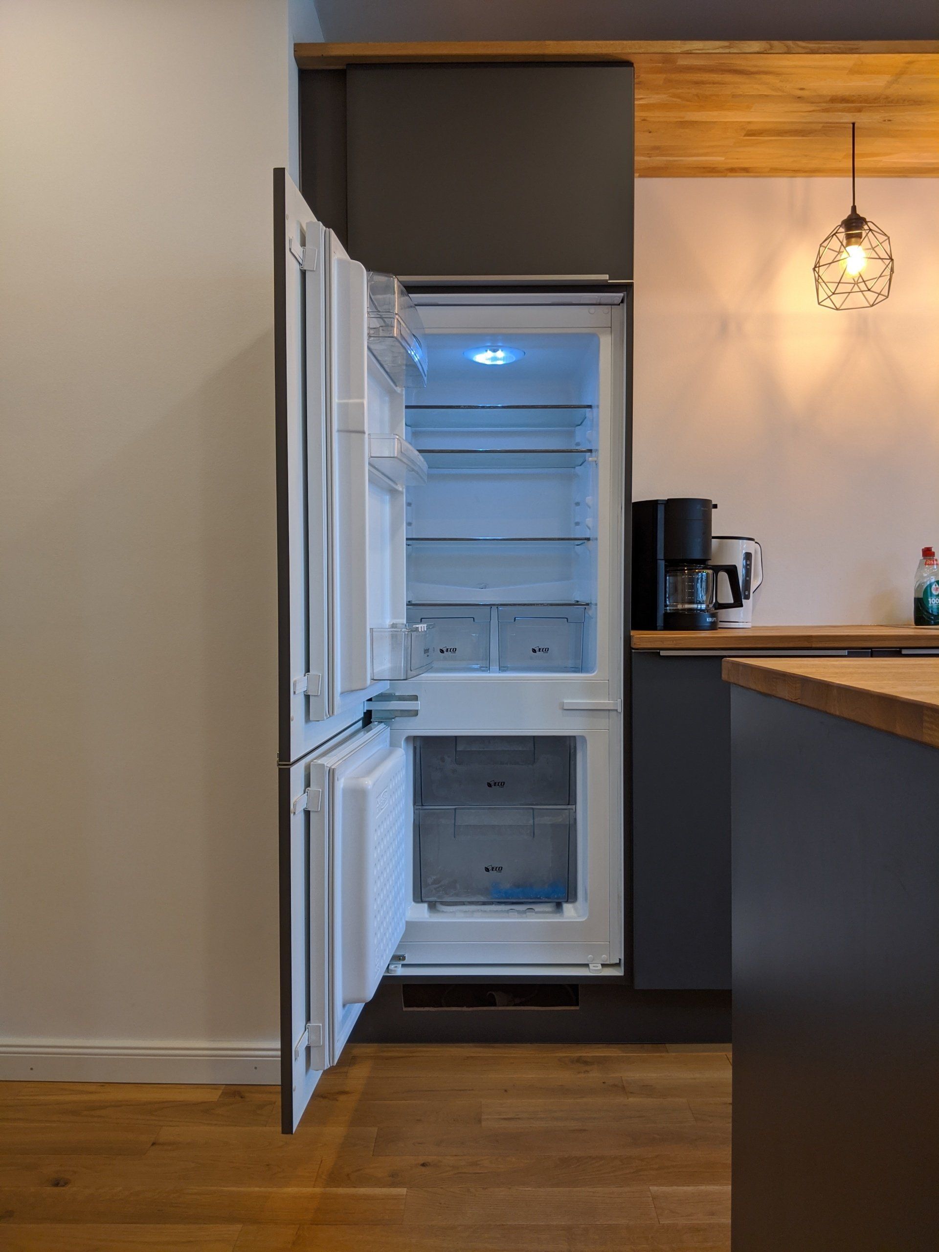 Schlafplatz für bis zu 7 Personen. Sie verfügt über eine neue Einbauküche mit voller Ausstattung (Backofen, Kochfeld, Kühlschrank, Mikrowelle, Spülmaschine, Kaffeemaschine, Wasserkocher) und Theke, einem Wohnzimmer mit Essplatz und TV, sowie einem Badezimmer mit Waschmaschine.
